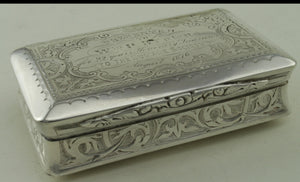 Life saving related Victorian Silver Snuff Box. Birmingham C.C Colen Cheshire 1875
