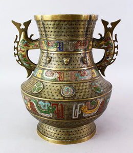 A 19th century Chinese bronze and cloisonne enamel two-handled jar